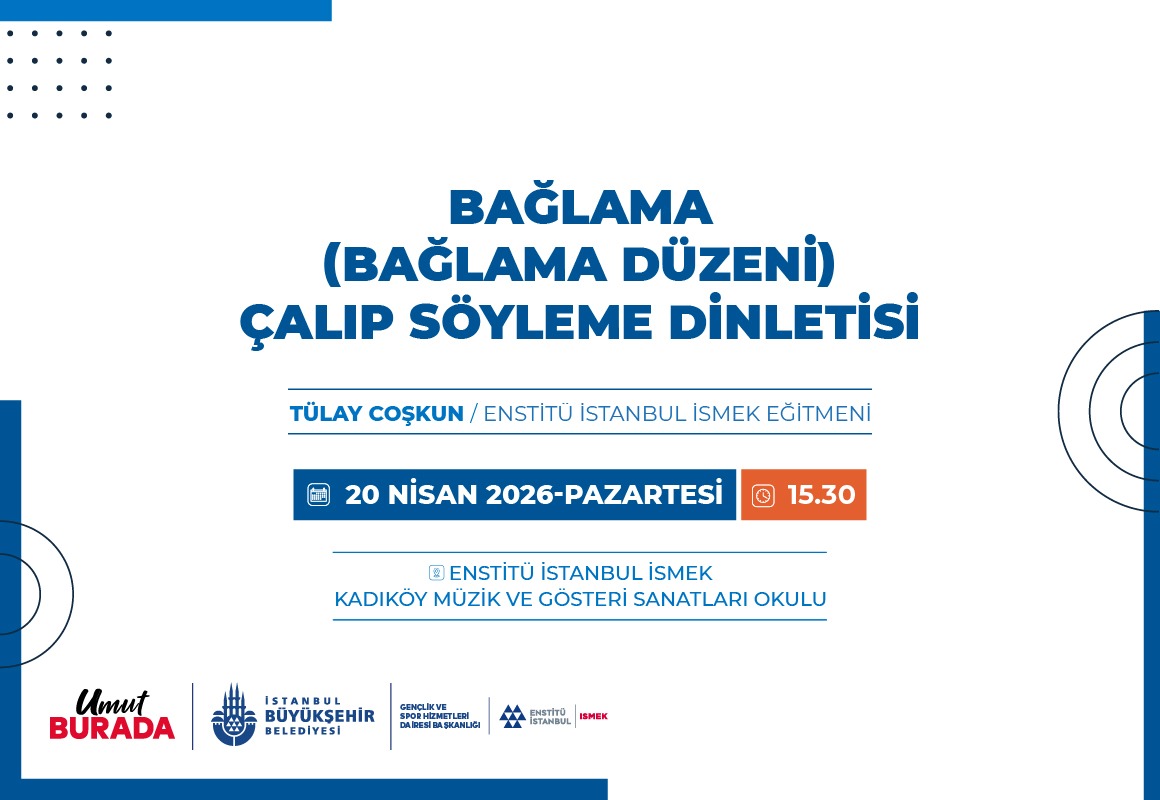 Enstitü İstanbul İSMEK’ten “Bağlama (Bağlama Düzeni) Çalıp Söyleme” eğitimi alan katılımcılar, eğitim dönemi boyunca öğrendiklerini, düzenlenen dinletide sergileyecek. Eğitmen Tülay Coşkun’un yönetiminde, Kadıköy Müzik ve Gösteri Sanatları Okulu’nda gerçekleşecek “Bağlama (Bağlama Düzeni) Çalıp Söyleme Dinletisi”nde katılımcılar, eğitim kapsamında edindikleri becerileri, eğitmen eşliğinde sahnede icra etme deneyimi yaşayacak. Dinletide, Türk Halk Müziği’nin sevilen eserleri icra edilecek.