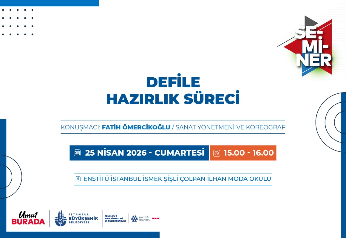 Enstitü İstanbul İSMEK, katılımcılara, bir defile düzenlenirken öncesinde yapılması gerekenler, teknik detaylarda doğru eşleştirmelerin yapılması, prova süreci gibi konularla hakkında bilgi vermek amacıyla “Defile Hazırlık Süreci” başlıklı seminer düzenliyor. Şişli Çolpan İlhan Moda Okulu’ndaki seminer, Sanat Yönetmeni ve Koreograf Fatih Ömercikoğlu’nun katılımıyla gerçekleşecek. “Defile Hazırlık Süreci”, “Defile Hazırlık Aşamaları”, “Sahne” ve “Prova”, seminerin konu başlıkları arasında yer alıyor.