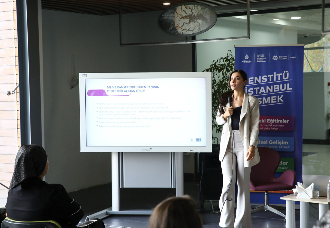 İstanbul Büyükşehir Belediyesi (İBB) Sağlık Dairesi Başkanlığı ve Enstitü İstanbul İSMEK iş birliğiyle “1-31 Ekim Meme Kanseri Farkındalık Ayı” kapsamında “Meme Kanseri Farkındalığında Erken Tanı ve Psikolojik Destek” başlıklı seminerler düzenledi. Seminerlerde, dünya genelinde her yıl 2 milyonu aşkın kadını etkileyen meme kanserinde erken teşhisin önemi vurgulandı.