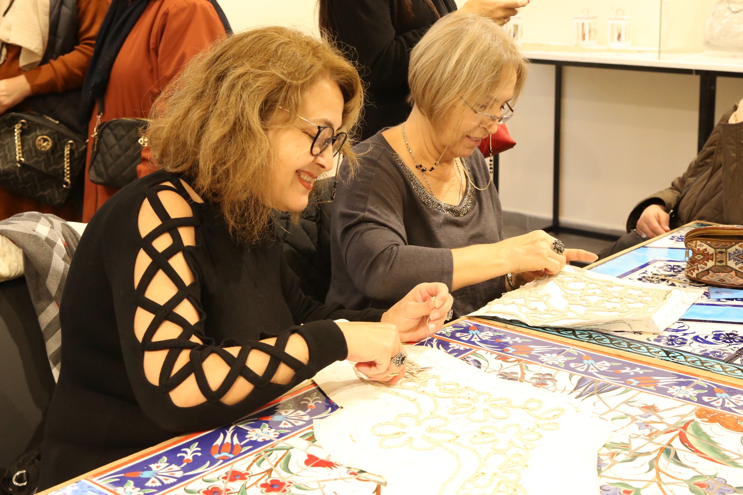 Dantel Anglez Sergisi’nde runner örtülerden çantalara, abajurlardan ev aksesuarlarına, tepsilerden bardak altlıklarına kadar pek çok eser yer aldı. Geleneksel çizgilerin modern anlayışa evrildiği zarif dantel motiflerini sanatseverlerle buluşturan sergi, ziyaretçilerin beğenisini kazandı. Sergide ayrıca ziyaretçilere, dantel anglez tekniklerini öğrenip uygulayabilme fırsatı sunan deneyim alanı da büyük ilgi gördü.