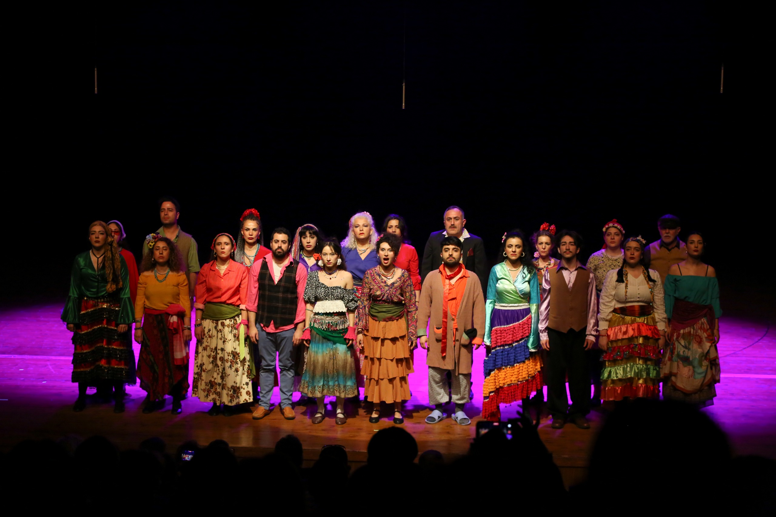 Dünya Tiyatro Günü’ne özel düzenlenen ve toplam 80 katılımcının performans sergilediği program, “Çehov Kıssaları” ve “Çingeneler Zamanı Müzikali” ile devam etti. Uygulamalı Tiyatro Temel Seviye eğitimi katılımcılarının, eğitmen Mert Can Kaplan yönetiminde sahnelediği “Çehov Kıssaları”nın ardından, Uygulamalı Tiyatro İleri Seviye programı katılımcıları ise Emir Kusturica’nın başyapıtı “Çingeneler Zamanı” filminden uyarlanan “Çingeneler Zamanı Müzikali”ni, eğitmen Şükrü Veysel Alankaya’nın yönetiminde sahneye taşıdı.