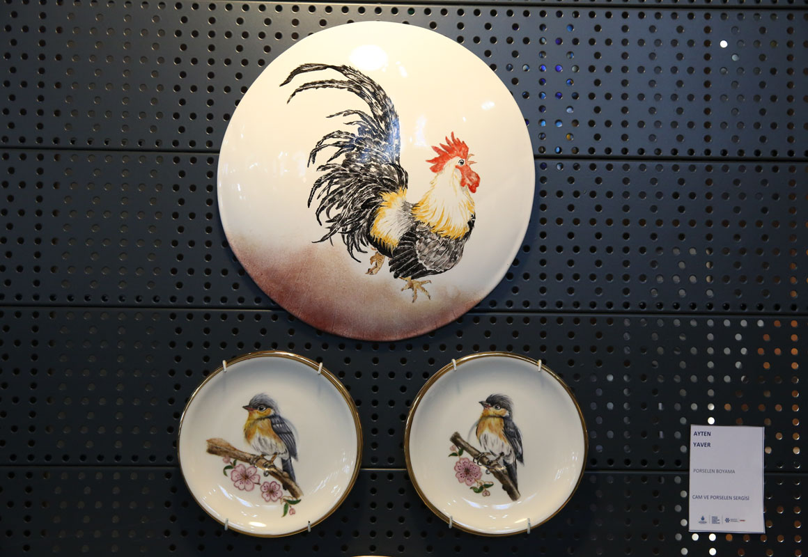 Katılımcıların, sabırla yoğurup emekle ürettiği birbirinden güzel eserler, açılışa gelen sanatseverlerin beğenisini kazandı. Büyük bir özenle hazırlanan eserlerin her biri, emeğin, sabrın ve estetik anlayışın birer yansıması olarak öne çıkıyor. Üsküdar Sanat ve Tasarım Okulu’nun yanı sıra Çukurbostan, Ataşehir Atatürk, Ataşehir Kayışdağı ve Beylikdüzü Kavaklı eğitim merkezlerinden katılımcıların eserlerinin yer aldığı sergide; porselen sır üstü boyama ve cam süsleme teknikleriyle hazırlanmış bardaklardan vazolara, duvar panolarından aynalara ve abajurlara kadar pek çok formda toplam 170 özgün eser sergileniyor.