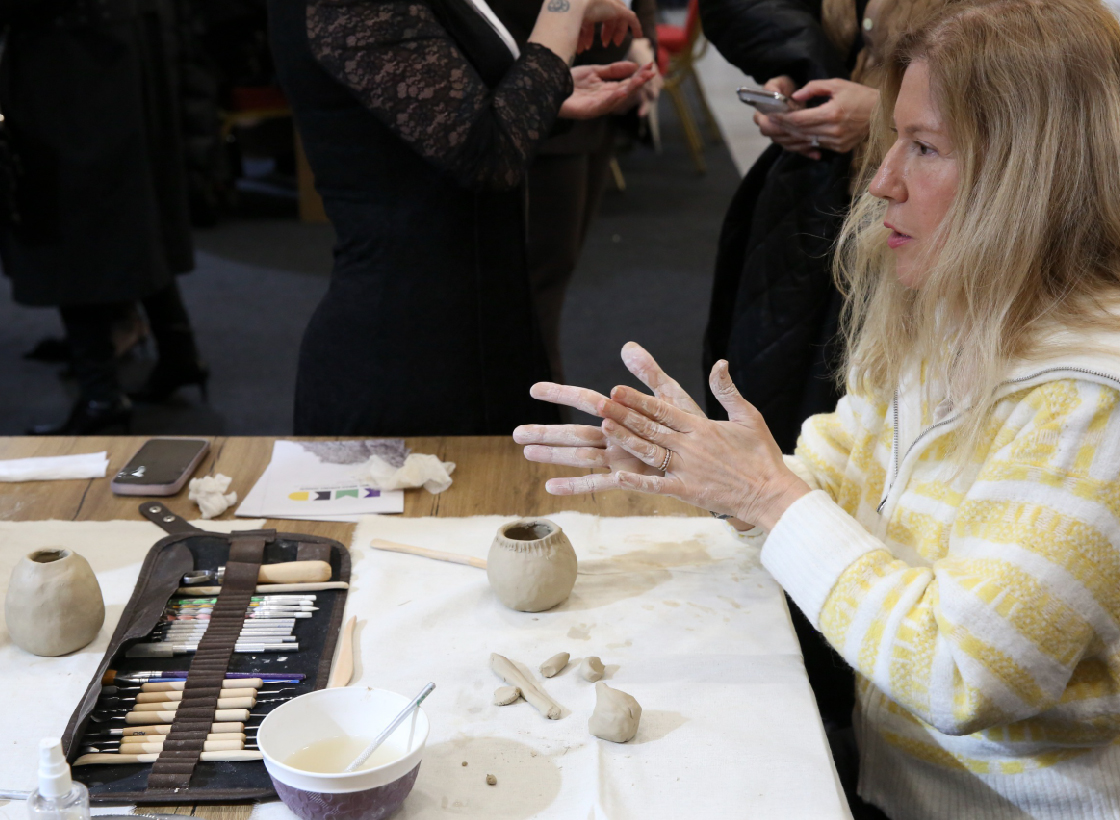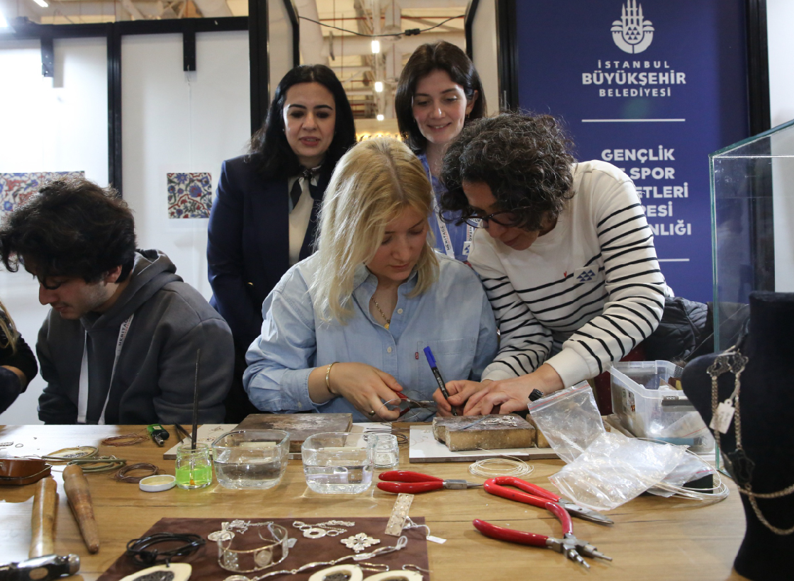 Cam süslemeden çiniye, halı dokumadan iğne oyasına, seramik şekillendirmeden tel kırmaya kadar pek çok alandaki atölyeler, açıldığı ilk günden itibaren fuar katılımcılarından büyük ilgi gördü.